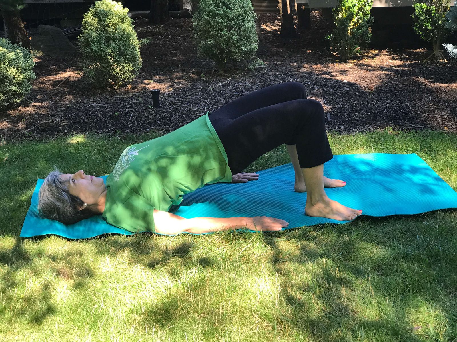 Bridge pose strengthens the glutes, thighs and legs. It engages the entire core, including the muscles from the rib cage to the pelvis and into the low back like a corset.